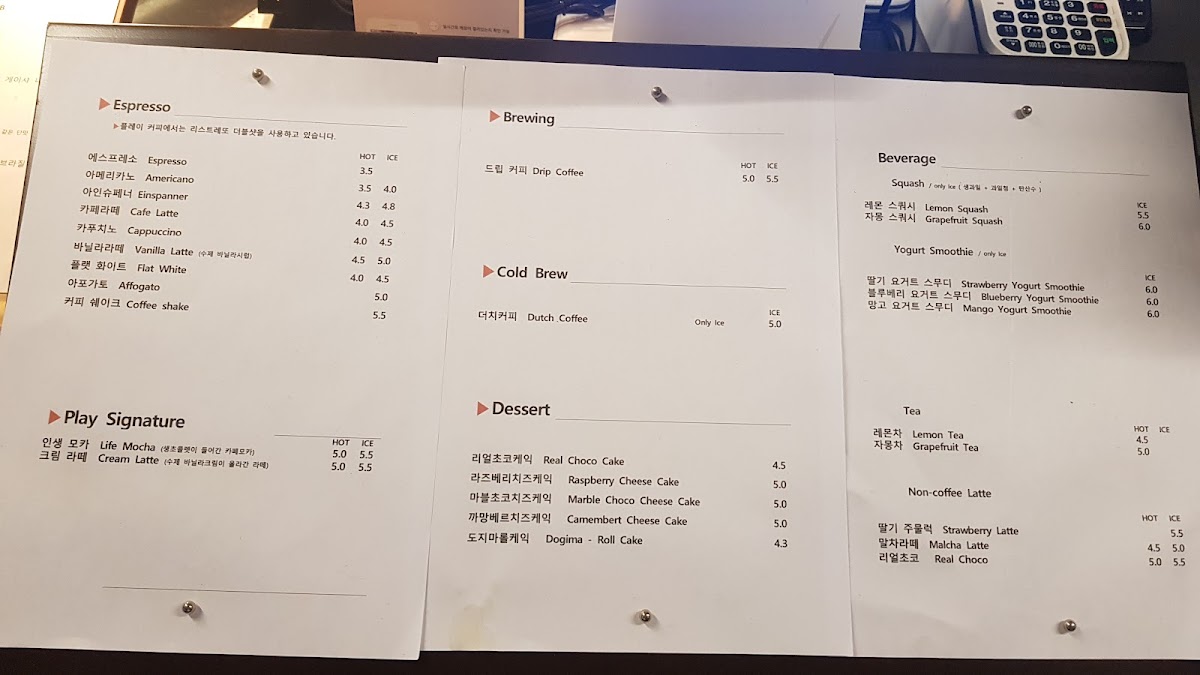 Play Coffee Lab Menu